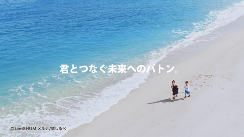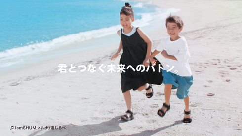 『君とつなぐ 未来へのバトン。』をキーワードに、沖縄の雄大な自然と神秘的な文化を、ダイナミックなドローン映像と子どもたちの生き生きとした表情で構成。